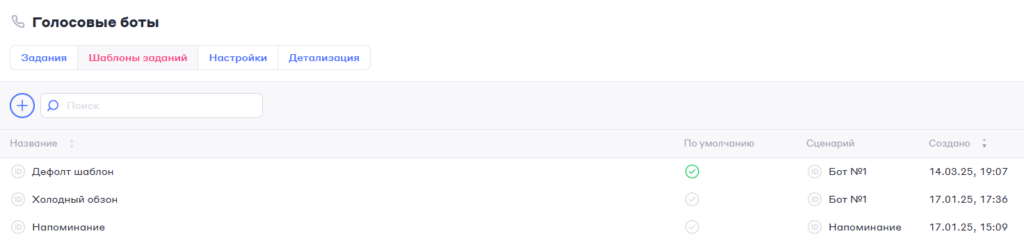 В списке шаблонов заданий на обзвон теперь отображается какой именно шаблон является шаблоном по умолчанию.