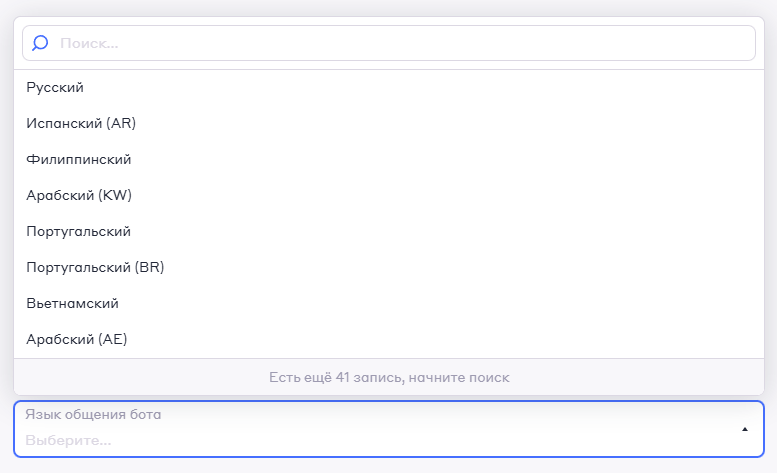 Теперь в параметрах виджета AI можно выбрать любой из языков, поддерживаемых на платформе.
