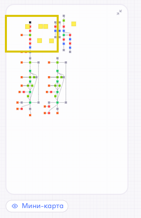Теперь в редакторе сценариев положение заметок отображается желтыми квадратами на мини-карте.