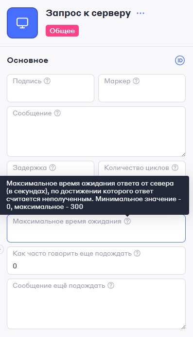 В параметрах блока Запрос к серверу было добавлено поле Максимальное время ожидания, которое позволяет установить таймаут ожидания ответа сервера.
